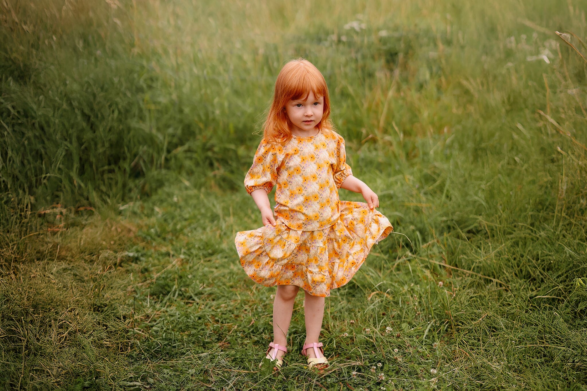 Ihanana uutuusmateriaalina mallistossa nähdään superpehmeä ja hieman pitsimäinen trikoo. Mallistossa on tarjolla useita uusia istuvuuksia, joissa leikitellään erilaisilla taskuilla, puhvihihoilla ja runsailla rypytyksillä. Tämä mallisto on täynnä keveyttä, iloa ja nostalgiaa – kuin lapsuuden kesäpäivät, jotka jäävät mieleen ikuisiksi ajoiksi. ❤