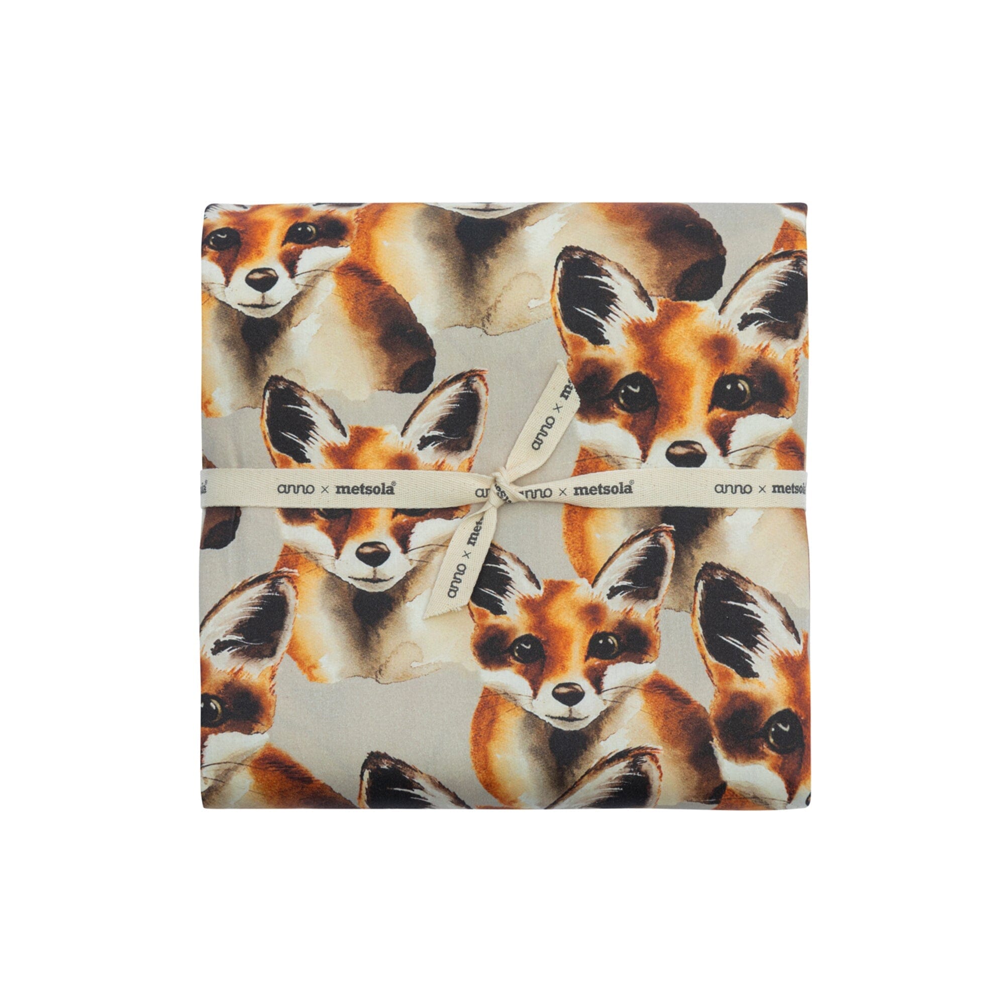 Henna Adelen kuvittama kettu-kuosi luo tuotteisiin uniikin tunnelman, joka tuo lämpöä ja persoonallisuutta kotiin.