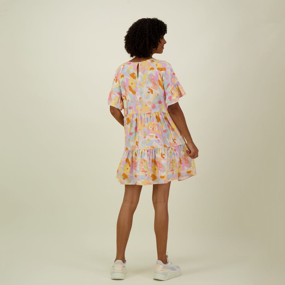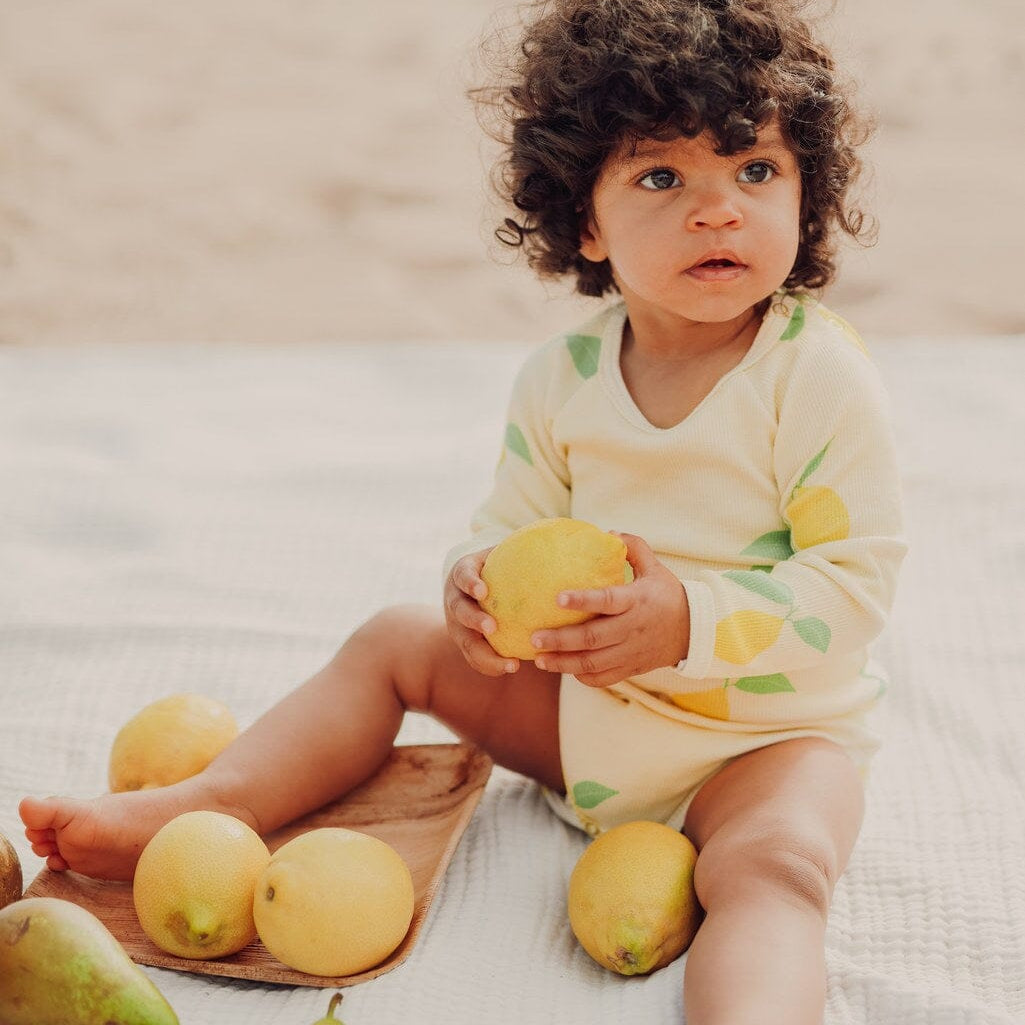 Malliston kuosit tuovat kesän lähelle. Sen sydämessä on kaksi vastustamatonta hedelmäkuosia: Sweet cherries ja Lemon tree, jotka huokuvat kesän raikkautta ja iloa. Niiden rinnalla nähdään herkkä, abstrakti kukkakuosi Pastel dance sekä leikkisä On the beach, joka vie suoraan rantaleikkien tunnelmaan. Yhdessä nämä kuosit muodostavat värikkään ja hyväntuulisen kokonaisuuden, joka hurmaa niin pienet kuin isommatkin. Ja mikä parasta – mallistossa on mukana myös samistelu-mekko äideille ja tyttärille Tahiti-kuosista! 💛