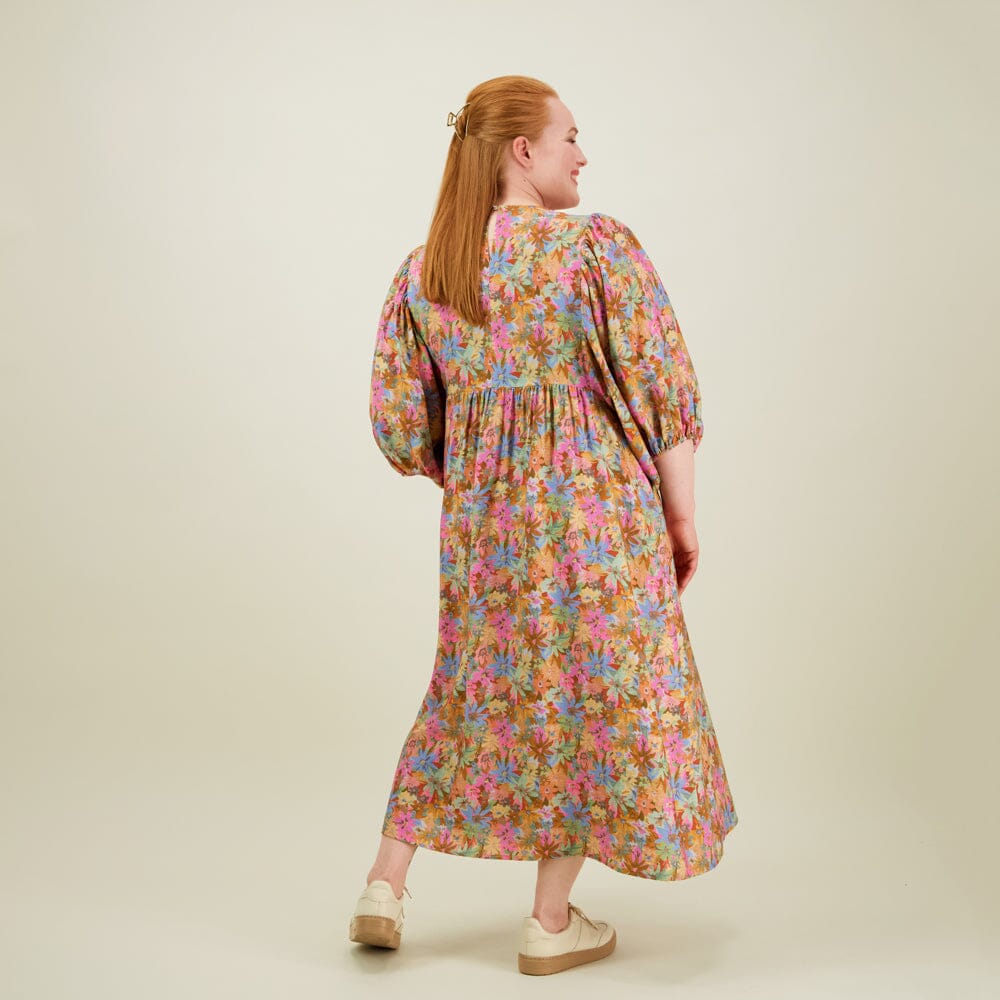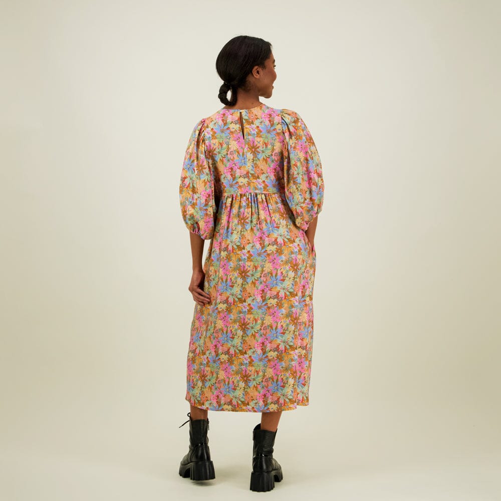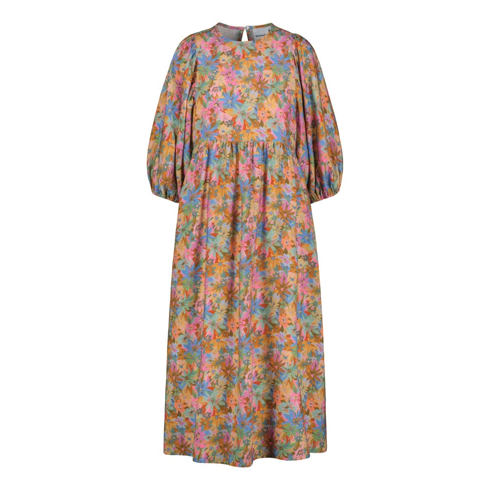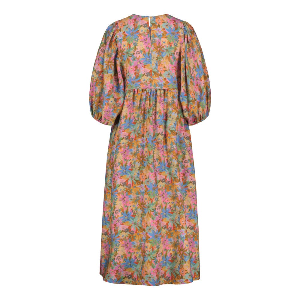 Mekon katseenvangitsijoina toimivat puolipitkät, kevyesti puhvimaiseen muotoon leikatut hihat, jotka tuovat siluettiin ilmettä ja ryhdikkyyttä. Midimitta tekee mekosta monikäyttöisen valinnan: se toimii niin arjen menoissa kuin juhlavammissa tilanteissa – valinta on sinun.