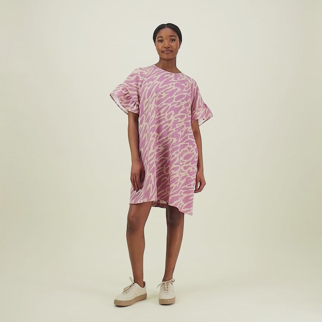 Sophy Frill Dress -Mekko värissä Purple on raikas ja moderni lisä syysvaatekaappiisi. Tämä Can you hear me? -malliston lyhyt mekko on suunniteltu niille, jotka rakastavat selkeitä linjoja, mutta arvostavat myös pieniä, harkittuja yksityiskohtia.