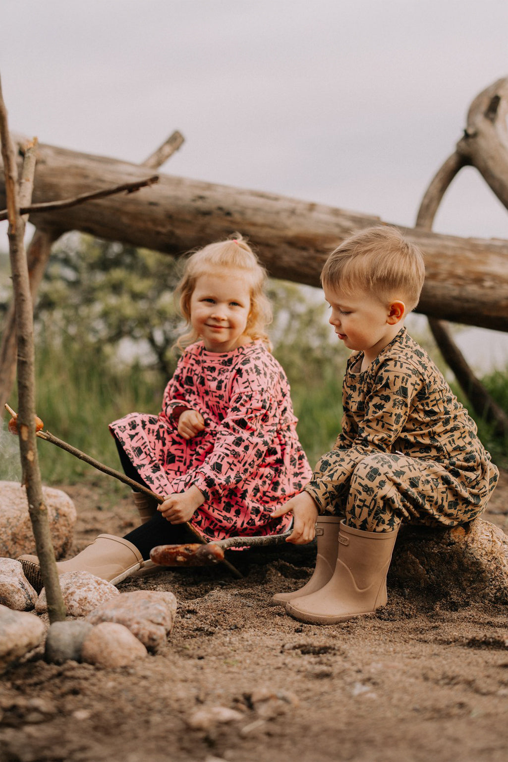 Syksyn lumo alkaa tästä. Syksyn ensimmäinen mallistomme saa sielunsa suomalaisesta erämaasta, luonnon rauhasta ja retkeilyn riemusta. Kuosien suloinen maailma vie sinut mukanaan – seikkailemaan kanoottiretkelle eläinystävien kanssa tai ihastelemaan graafista retkitunnelmaa, jossa jokainen yksityiskohta henkii luonnonläheistä estetiikkaa. ❤︎