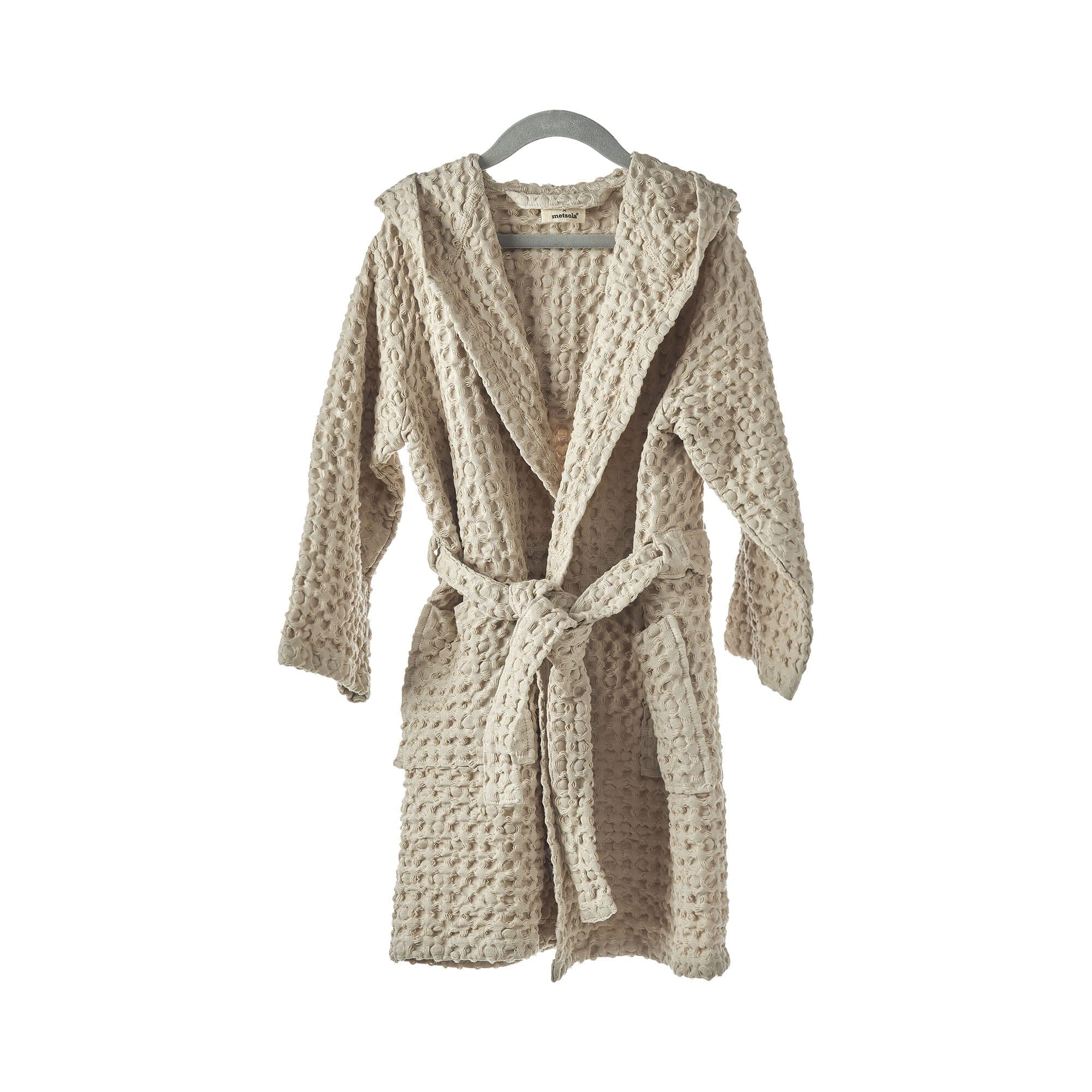 Esipesu tekee puuvillasta pehmeän ja antaa kylpytakille sen rennon ilmeen. Kylpytakki imee hyvin kosteutta ja kuivuu nopeasti käytön jälkeen. Kylpytakissa on taskut ja vyö. Saunatakki / aamutakki on saatavilla kolmessa eri sävyssä ja se on osa Anno x Metsola -yhteistyömallistoa.