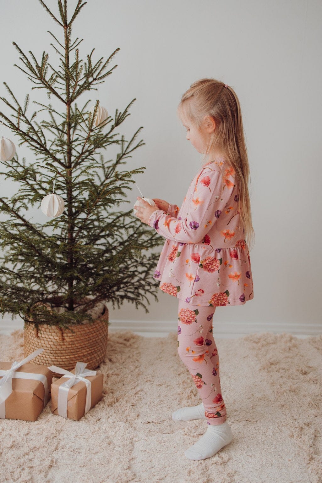 Whispers -Leggingsit värissä Rosy tuovat asuun pehmeyttä ja kukkivaa juhlatunnelmaa. Metsolan Under the Same Moon -mallistoon kuuluvat leggingsit on valmistettu joustavasta ja miellyttävästä luomupuuvillatrikoosta, joka takaa mukavuuden niin arkeen kuin juhlaan.