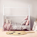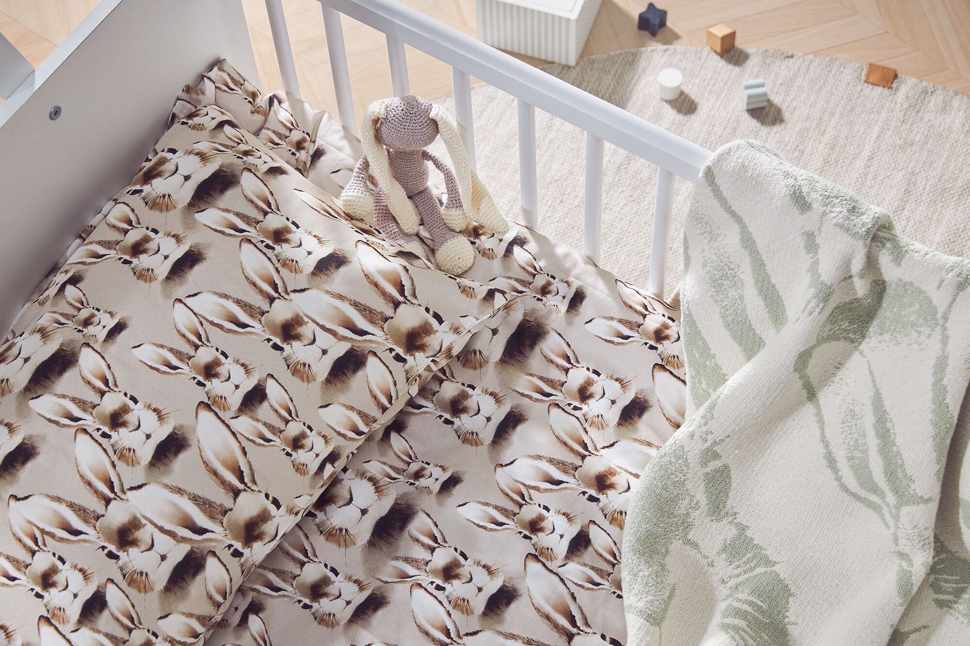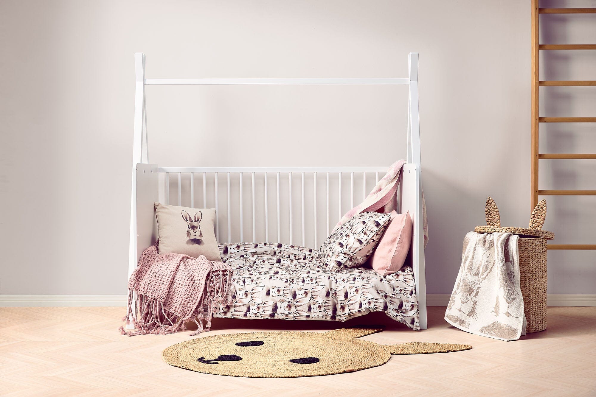 Ihanan pehmoinen, puuvillasatiininen lasten pussilakanasetti rakastetulla Henna Adelin pupukuosilla. Setissä mukana myös tyynyliina koossa 50x60 cm.