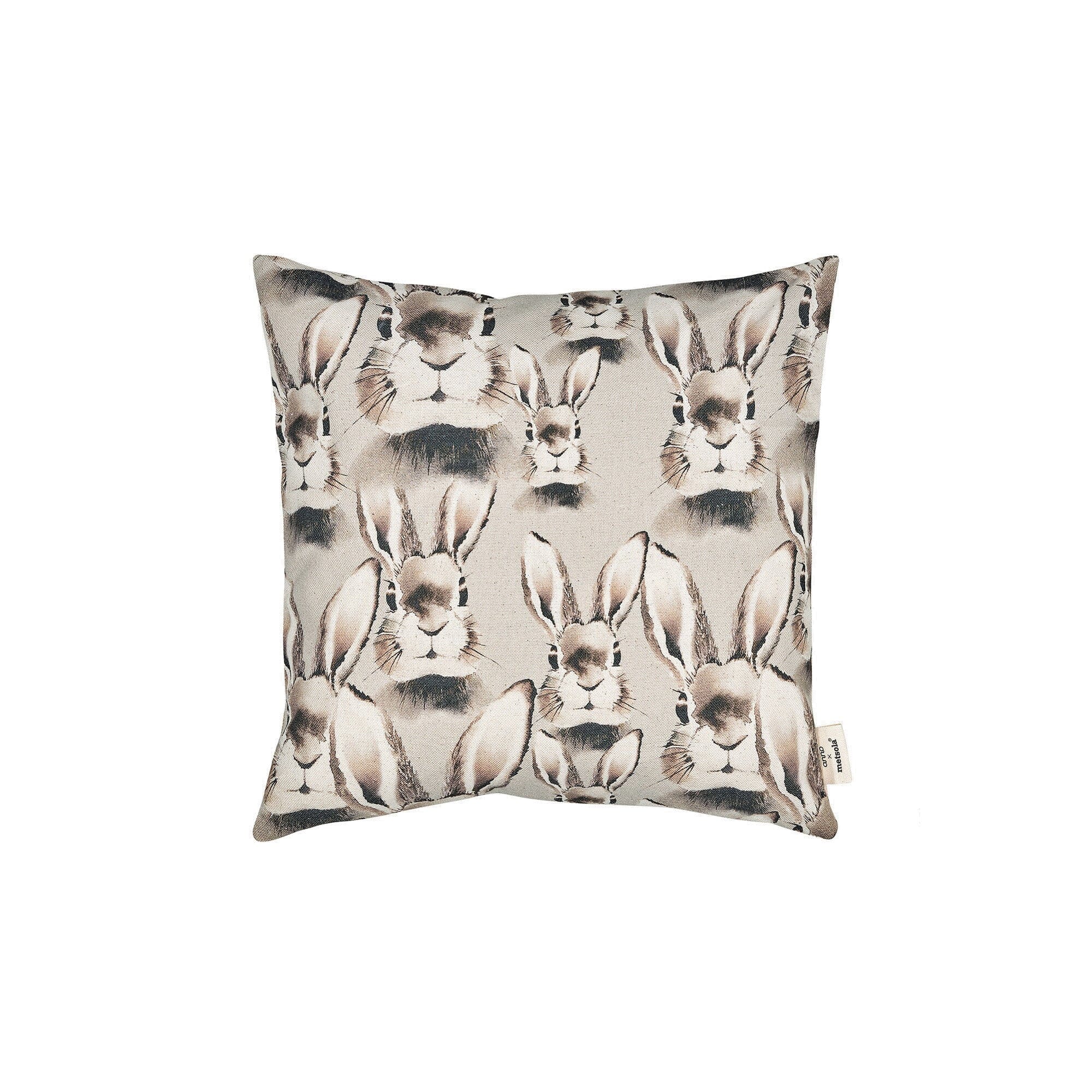 Kaunis Pupunen-koristetyynynpäällinen Henna Adelin rakastetulla Pupu-kuosilla, painettuna valkaisemattomalle puuvillakankaalle.