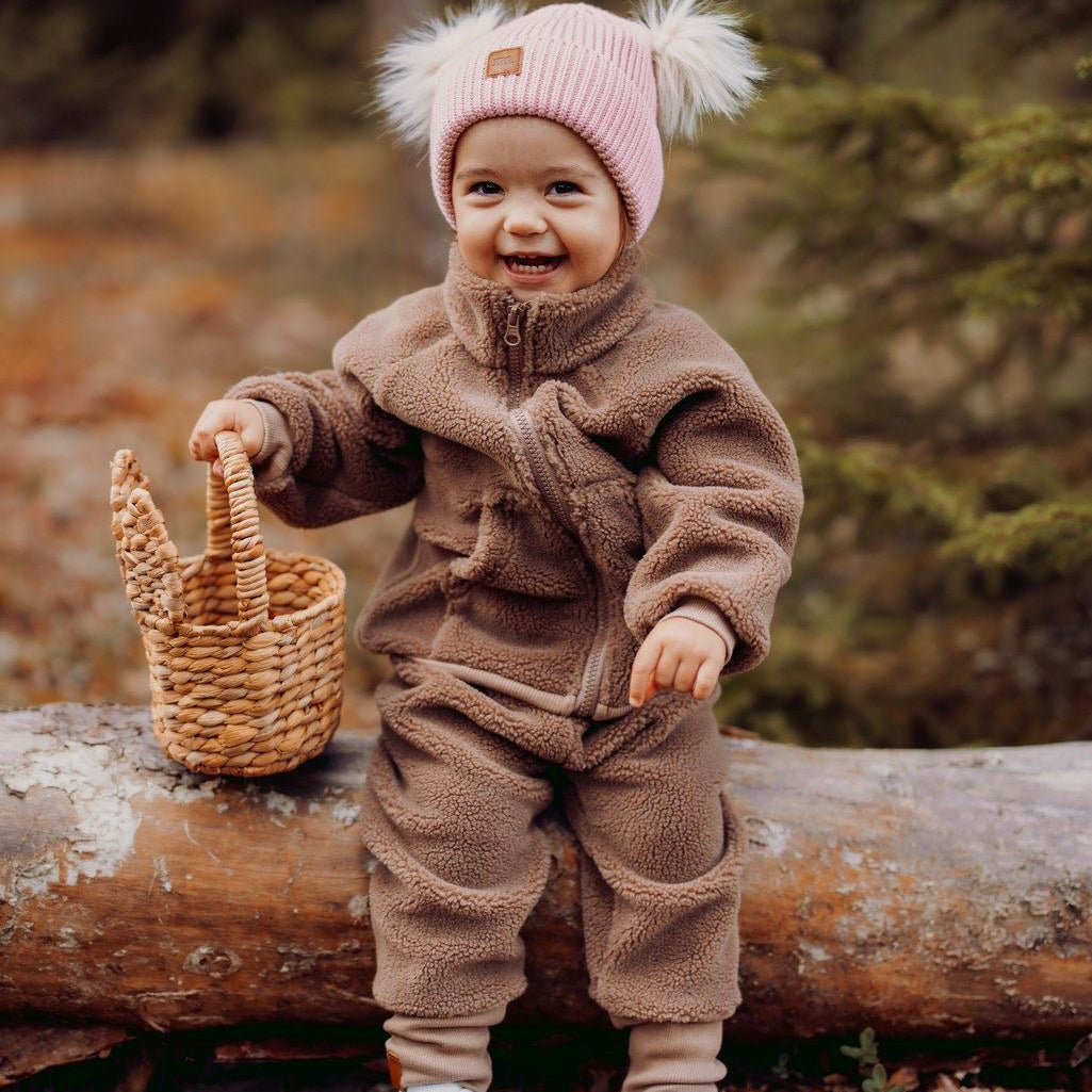 Fur Pom Cable Baby Beanie -Merinovillapipo | Rosy