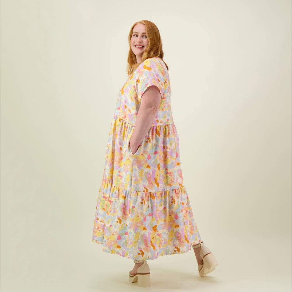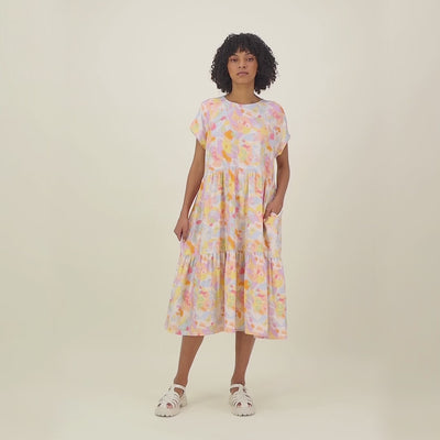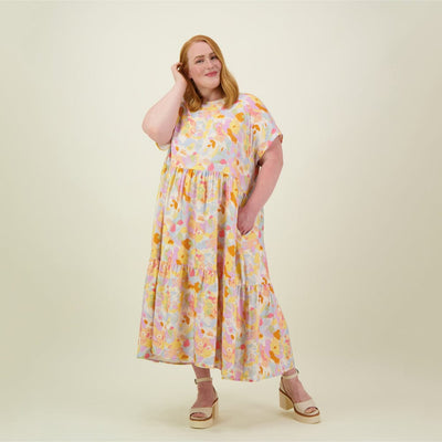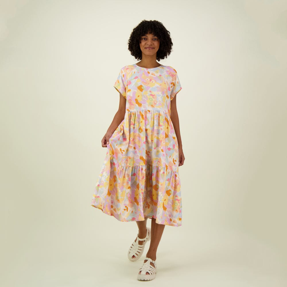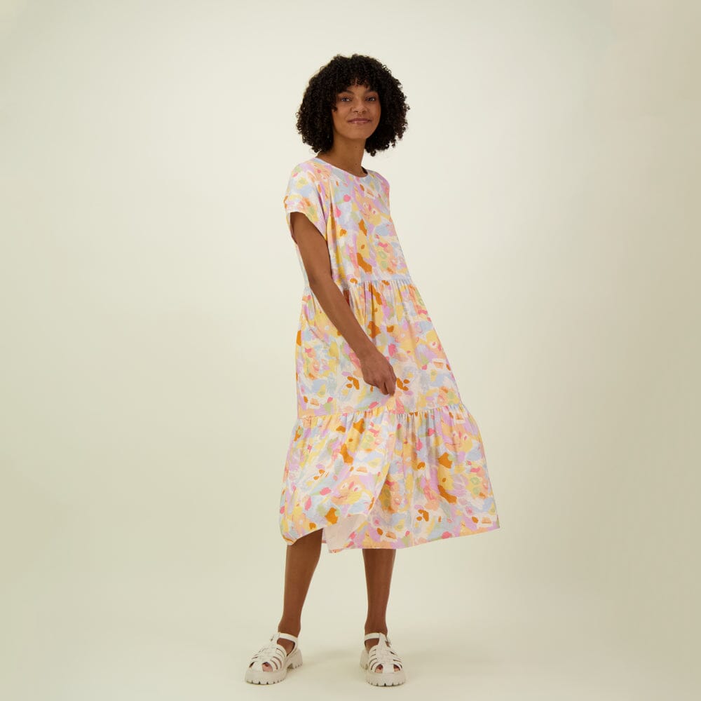Hempeän ilmava ja helteisiin täydellinen, Tahiti midi -mekko hurmaa trooppisella tunnelmallaan ja kauniisti laskeutuvalla viskoosikankaalla. Kerrosmekon helma tuo näyttävää liikettä ja ilmavuutta, tehden siitä sekä naisellisen että rennon valinnan kesäpäiviin. Sivusaumoihin upotetut taskut viimeistelevät käytännöllisen muotoilun – helppo heittää ylle aamusta iltaan!