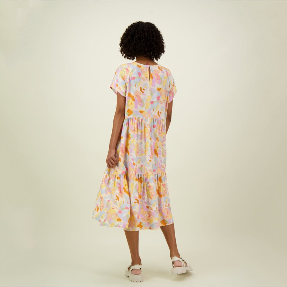 Keskimittainen pituus ja kerrostettu siluetti tekevät mekosta monikäyttöisen: yhdistä rentoihin sandaaleihin tai viimeistele look näyttävillä koruilla ja korkkareilla iltatilaisuuksiin.