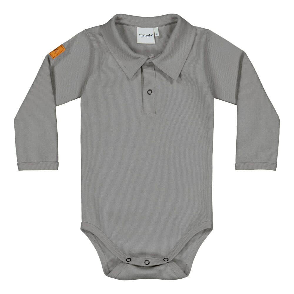 Collared Rib -Body värissä Cloudy on pehmeä ja siisti vauvan juhlabody, jossa yhdistyvät klassinen muotoilu ja arjen käytännöllisyys. Pitkät hihat, pieni kaulus ja nepparilista rinnassa tekevät ilmeestä huolitellun, ja pehmeä luomupuuvillainen rib tarjoaa erinomaisen käyttömukavuuden.