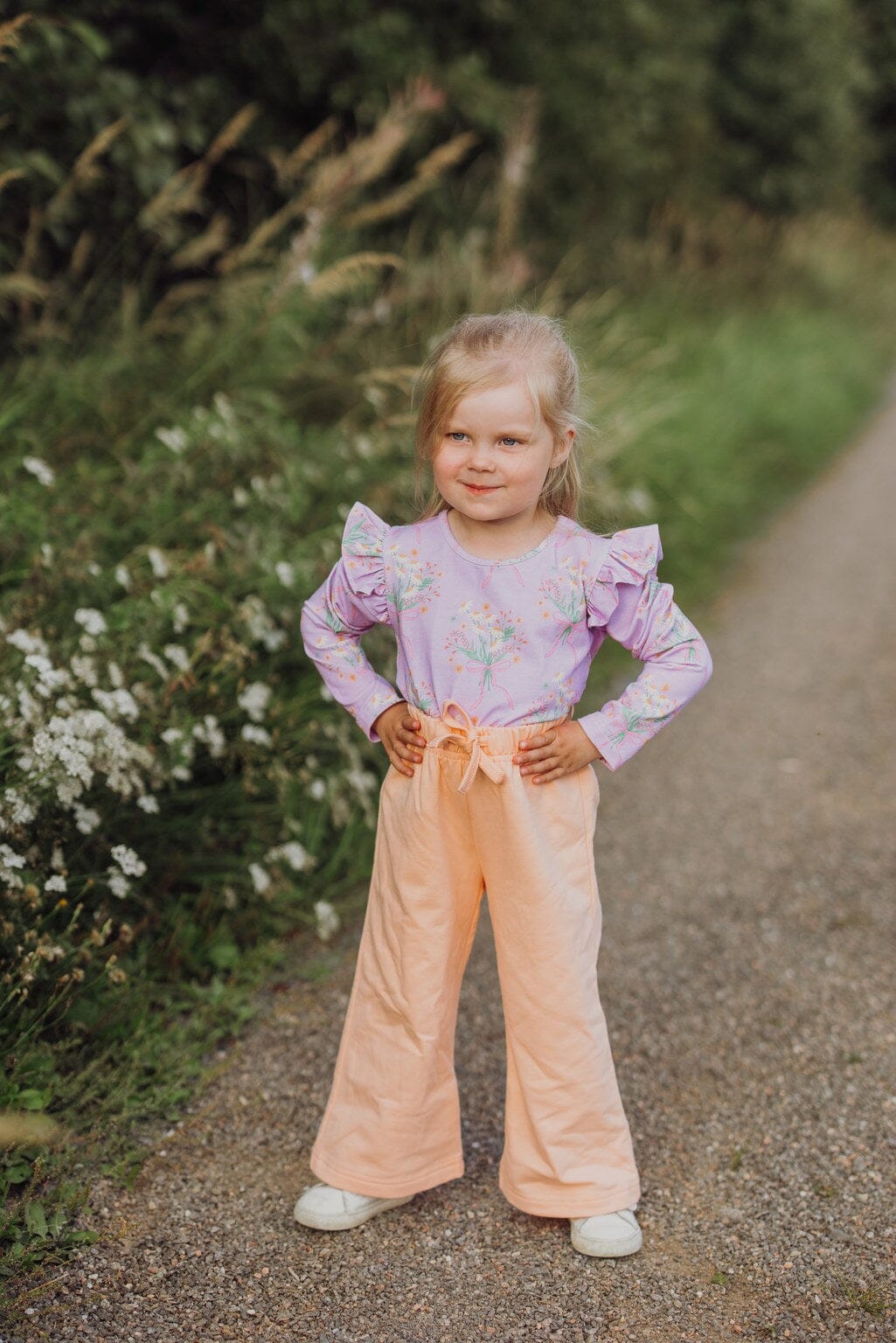 Wide Leg Sweatpants -Collegehousut ovat arjen uutuus, jossa tyyli ja mukavuus kulkevat käsi kädessä. Näissä uudessa lasten housumallissa on leveät, rennosti laskeutuvat lahkeet, jotka tuovat ilmeeseen ripauksen leikkisää ilmaa ja liikettä. Housujen heleä Peachy-sävy tuo asuun pehmeyttä ja iloa - täydellinen sävy, joka toimii sekä yksiväristen että kuosillisten yläosien kanssa.