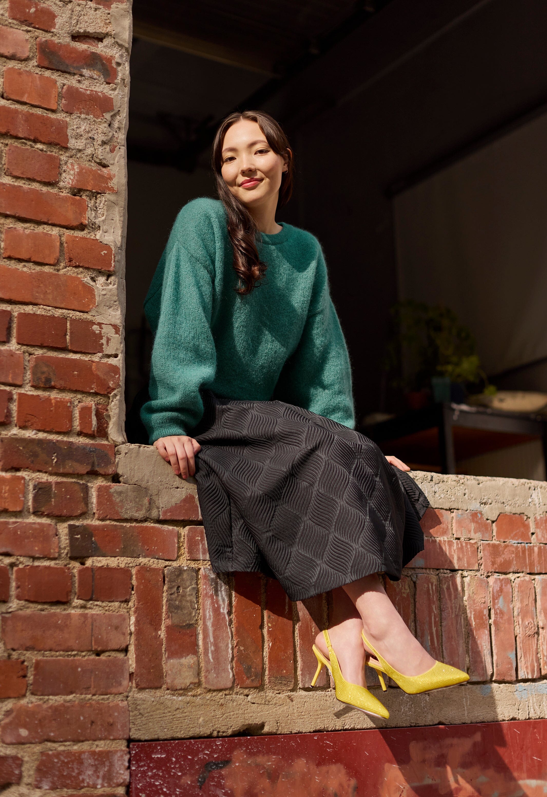 Mohair Sweater -neulepaita sävyssä Wasabi on Metsolan neulemalliston raikas tulokas – uusi, ylellinen neulepaita, jossa yhdistyvät luonnonmateriaalien pehmeys ja moderni muotoilu. Suomessa, Tuusulassa valmistettu neule on tehty laadukkaasta mohairista ja merinovillasta, jotka tekevät siitä yhtä aikaa ilmavan, lämpimän ja ylellisen tuntuisen.