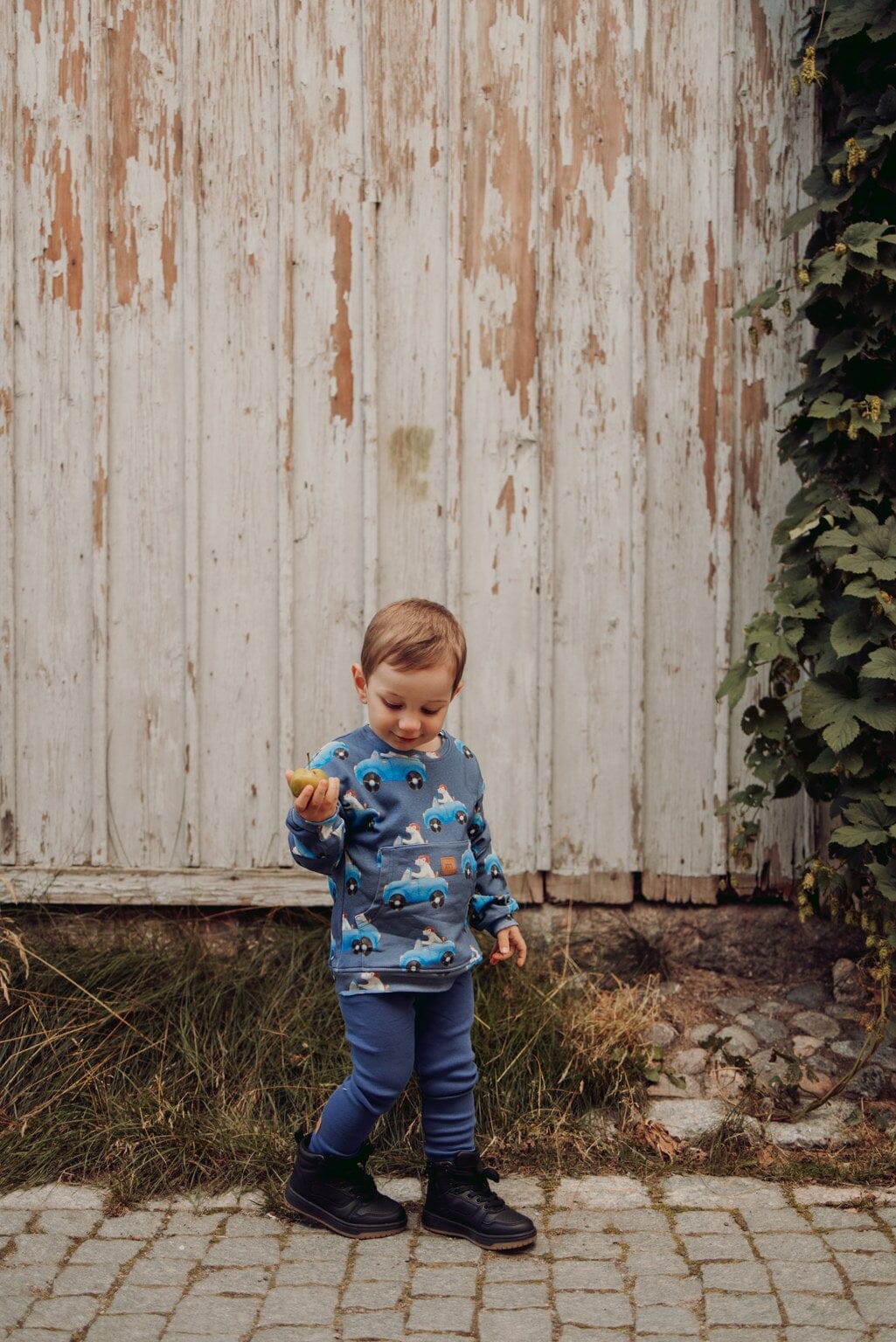 Syvä tummansininen Nighty-sävy tuo kuosiin rauhallisen ilmeen, joka toimii upeasti arkipukeutumisessa. Paita on valmistettu pehmeästä ja sisäpinnalta harjatusta luomupuuvillacollegesta, joka tuntuu miellyttävältä ihoa vasten ja pitää lämpimänä viileämpinä päivinä.