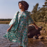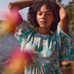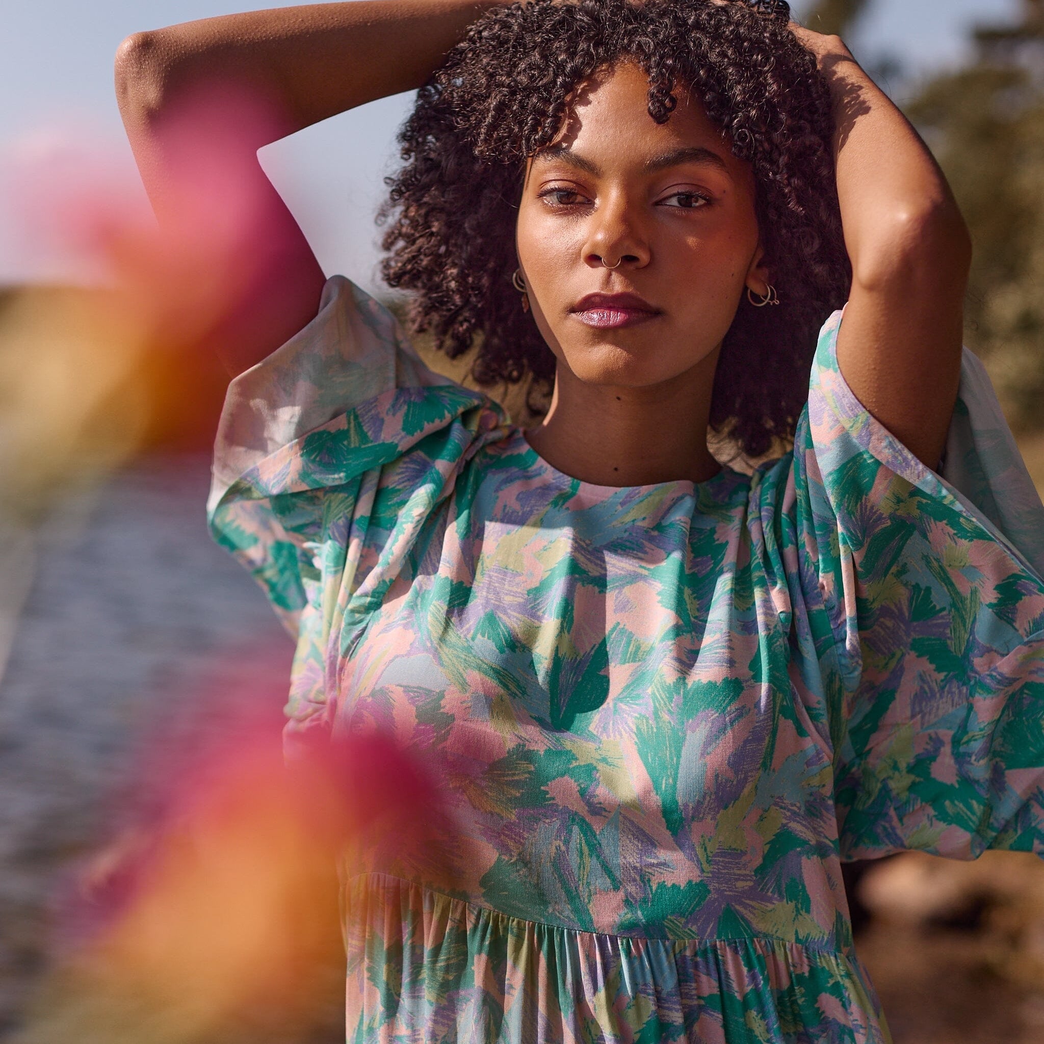 Yhdistä mekon herkät sävyt neutraaleihin asusteisiin hillittyyn lookiin tai korosta kuosin taianomaista tunnelmaa rohkeammilla väriyhdistelmillä. Olipa edessäsi kiireinen päivä kaupungilla, tärkeä juhlatilaisuus tai hetki itselle, Bell Sleeve Midi Dress tuo asuusi ajatonta eleganssia.