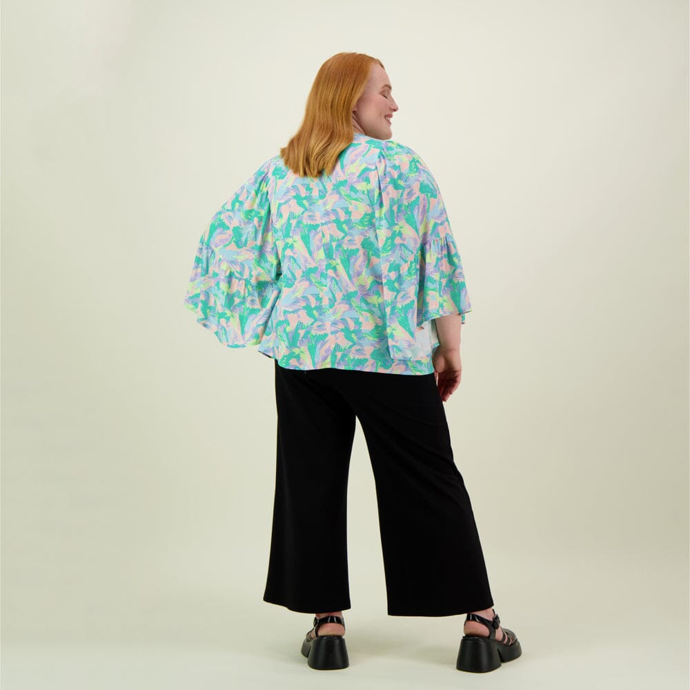 Olkapäiden kaunis rypytys tuo hihoihin upeaa volyymia, ja laskeutuvat kellohihat liikkuvat elegantisti jokaisella askeleella. Paita on valmistettu 100 % viskoosista, joka tuntuu iholla kevyeltä ja hengittävältä. Laadukas, vastuullisesti valmistettu materiaali takaa paitaan miellyttävän käyttökokemuksen ja kauniin istuvuuden.