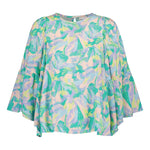 Tämä upea Bell Sleeve -paita hurmaa pehmeästi laskeutuvalla siluetillaan ja näyttävällä Dream-kuosilla. Kuosin puuväreillä kuvitettu taideteos yhdistää modernin ilmeen unenomaiseen värimaailmaan, jossa pastellisävyt sulautuvat harmonisesti yhteen.