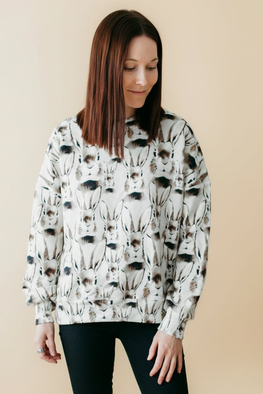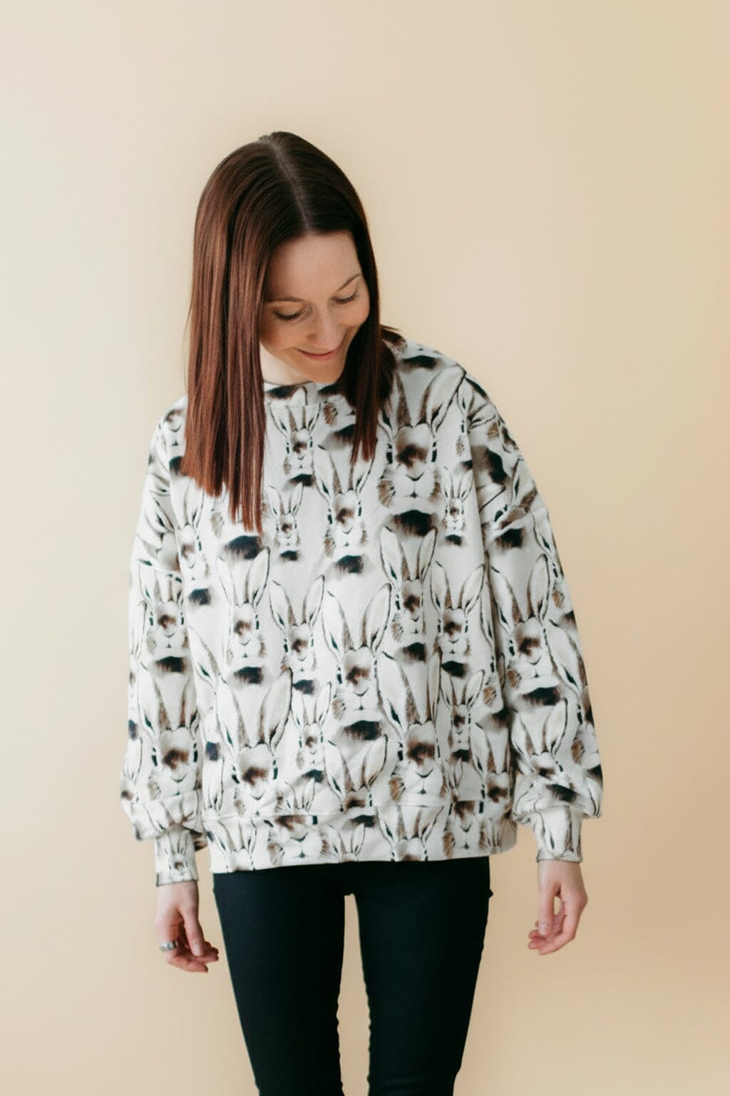 Collegepaitaa koristaa Henna Adelin suunnittelema hurmaava klassinen, harmaan sävyinen, pupu-kuosi, joka tuo ilmeeseen persoonallisuutta. Laadukas luomupuuvillatrikoo tuntuu miellyttävältä iholla ja tekee paidasta arjen luottovaatteen.