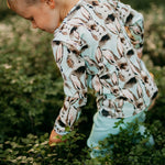 Bunny Ocean -pitkähihainen trikoopaita yhdistää Henna Adelin rakastetun Bunny-kuosin ja raikkaan turkoosin Ocean-sävyn. Tämä luomupuuvillasta valmistettu paita on miellyttävän pehmeä ja hengittävä, tuoden mukavuutta lapsen jokaiseen päivään.