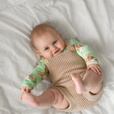 Neuleshortsit on valmistettu pehmeästä ja hengittävästä luomupuuvillasta. Materiaalin joustavuus tekee vauvan shortseista mukavat päällä ja mahdollistaa liikkumisen vapauden.