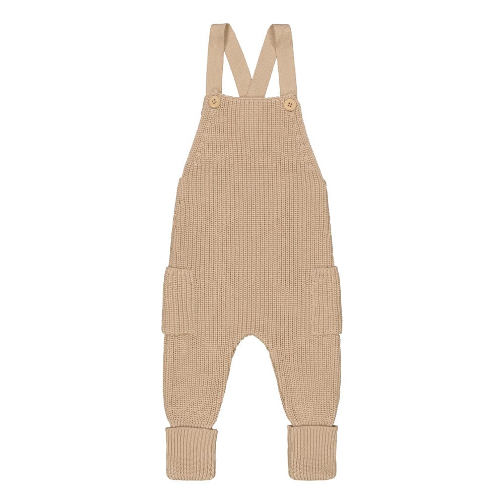 Cotton Knit Dungarees -neulehenkselihousut maanläheisen murretussa Moonlight-värissä ovat ajattoman tyylikkäät ja käytännölliset pienten arkipukeutumiseen.