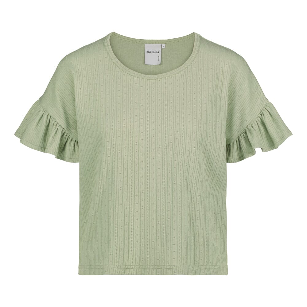 Hihansuissa olevat röyhelöt tuovat kokonaisuuteen leikkisää eleganssia ja vievät ajatukset lämpimiin hetkiin luonnon helmassa. Milky Pear -sävy on lempeän harmoninen ja helposti yhdisteltävä – täydellinen valinta niin arkeen kuin rennompiin juhlahetkiin.