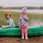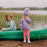 Happy Ones -kuosissa onnelliset orava ja pupu -kaverukset melovat pohjoisen koskissa kohti iloisia seikkailuja! 🖤