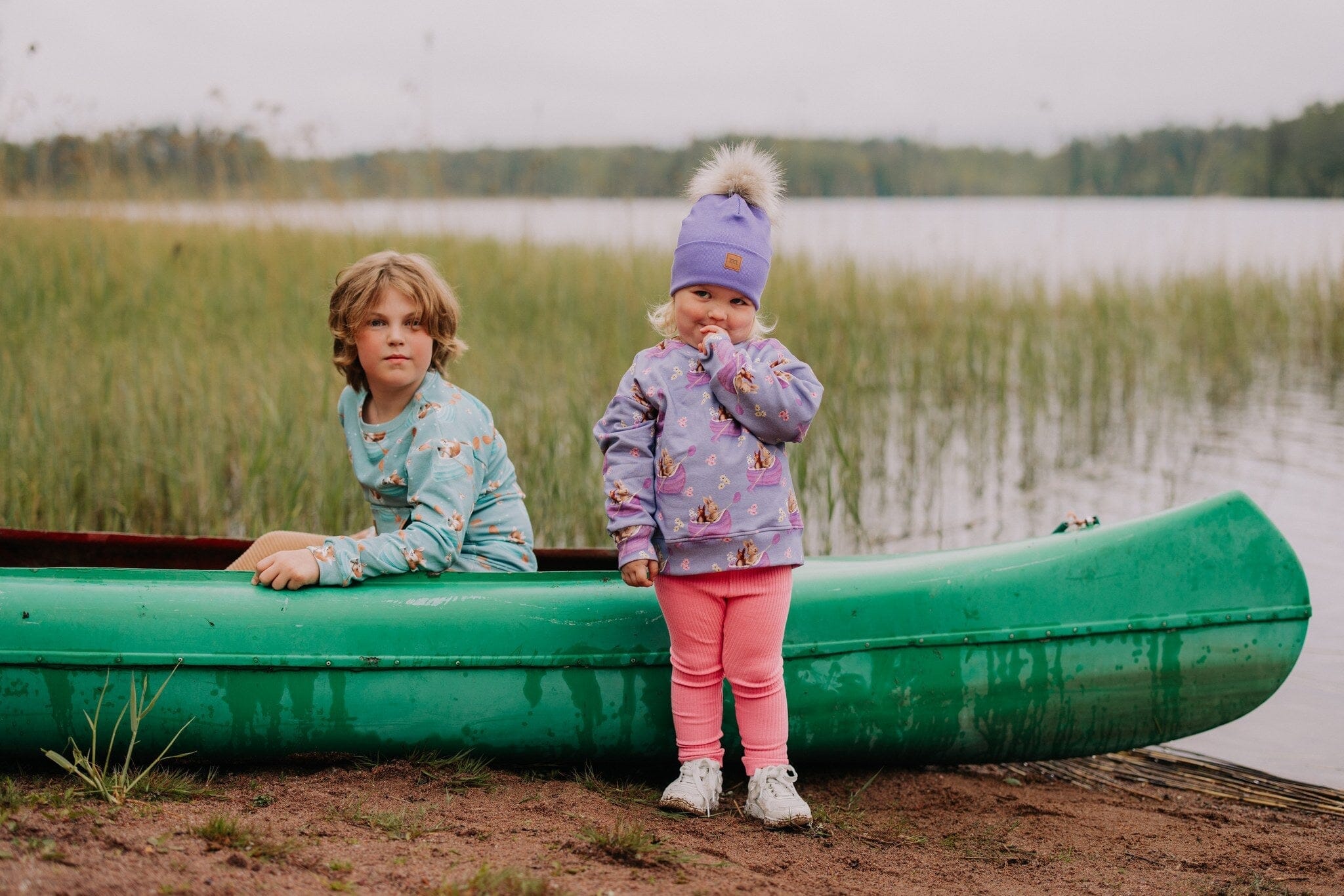 Happy Ones -lasten collegepaita tuo pehmeyttä ja iloa jokaiseen päivään. Väljä oversize-malli ja harjatulla sisäpinnalla varustettu luomupuuvillacollege takaavat rennon istuvuuden ja ylellisen mukavuuden. Henna Adelin suunnittelema leikkisä lilasävyinen kuosi tekee tästä collegepaidasta vaatekaapin ilahduttavan katseenvangitsijan – täydellinen yhdistettäväksi leggingsien tai housujen kanssa.