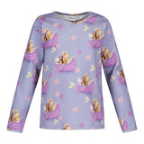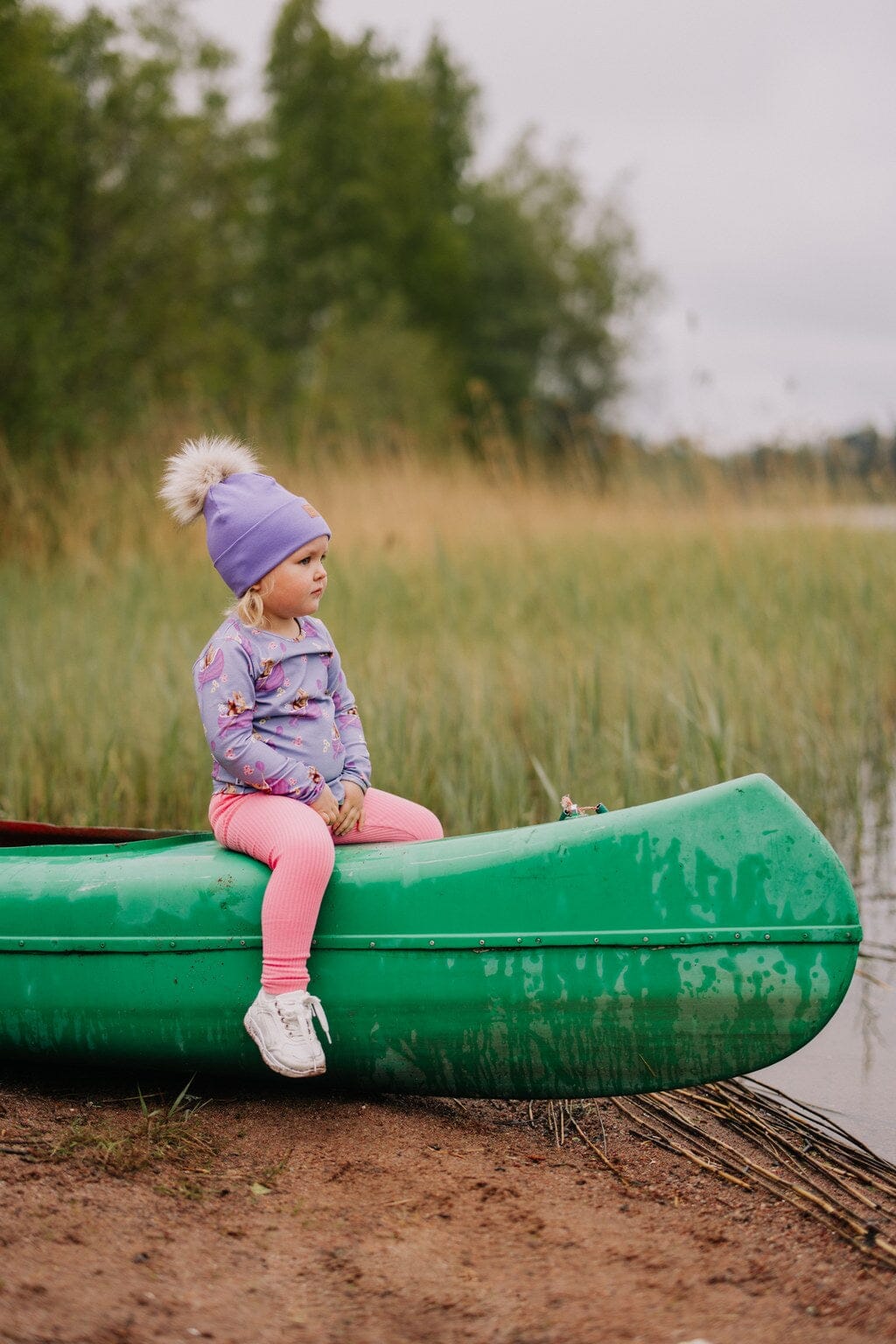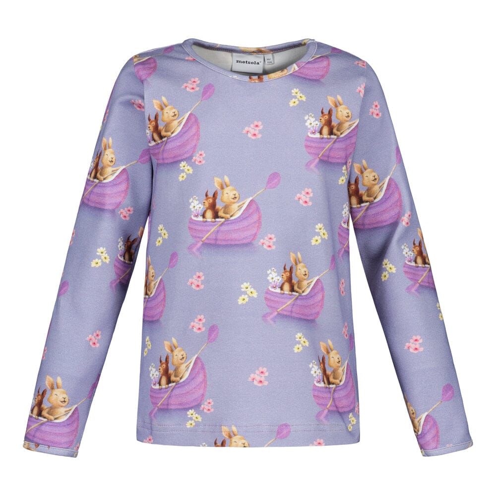 Trikoopaita on pehmeä ja käytännöllinen valinta arjen seikkailuihin. Pitkähihainen lasten paita on valmistettu laadukkaasta luomupuuvillatrikoosta, joka tuntuu miellyttävältä ihoa vasten ja kestää aktiivista käyttöä. Henna Adelin suunnittelema suloinen lilasävyinen kuosi tuo asuun iloista ilmettä ja leikkisää tunnelmaa.