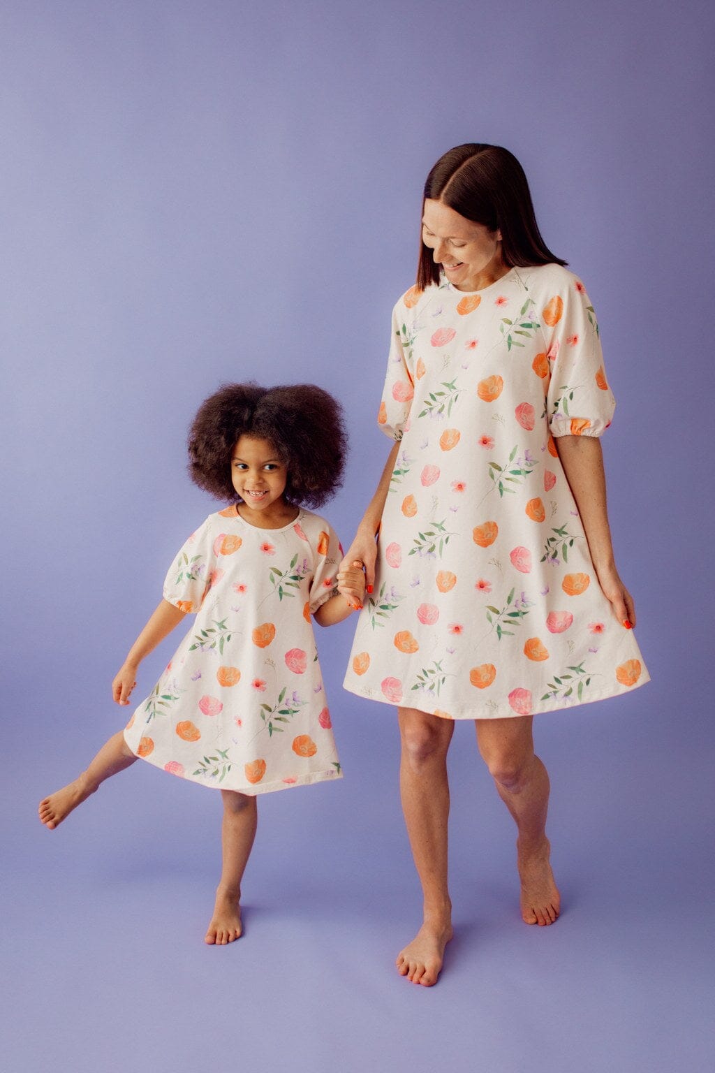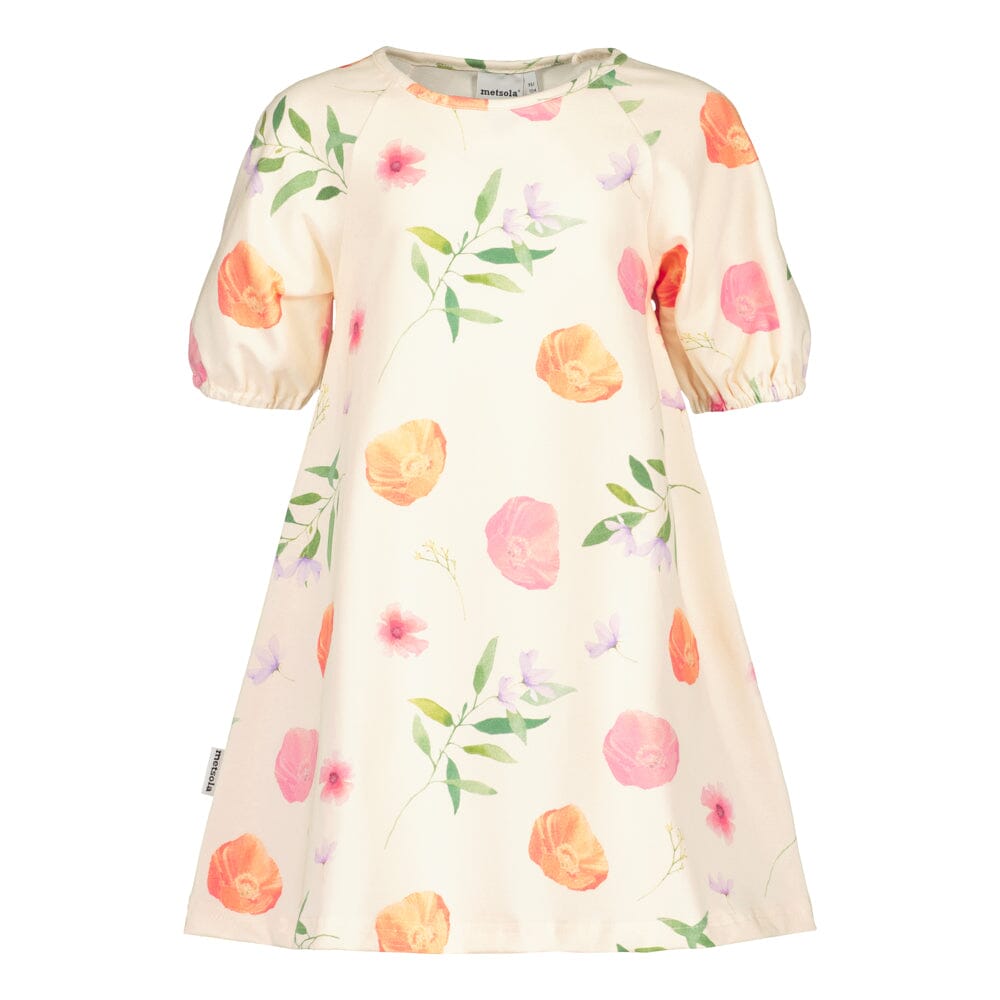 Suloisen Lovely-kuosin koristama lasten puhvihihainen tunikamekko tuo kevääseen ripauksen leikkisyyttä ja ripauksen juhlan tuntua. Mekossa on ilmava A-linjainen leikkaus ja lyhyet puhvimaiset hihat, jotka tekevät siitä yhtä aikaa tyylikkään ja mukavan.