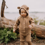 Neuletakin hupussa on suloiset nallekorvat, ja päivitetyn mitoituksen ansiosta huppu istuu aiempaa paremmin. Edessä on napitus, joka tekee takista helpon pukea ja kerrostaa.