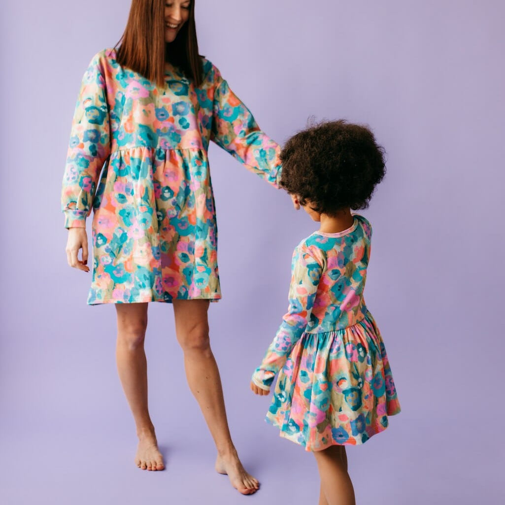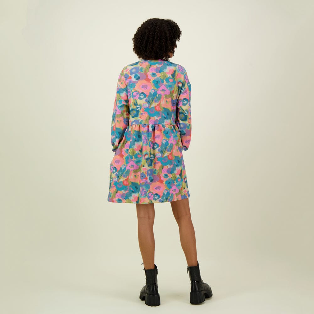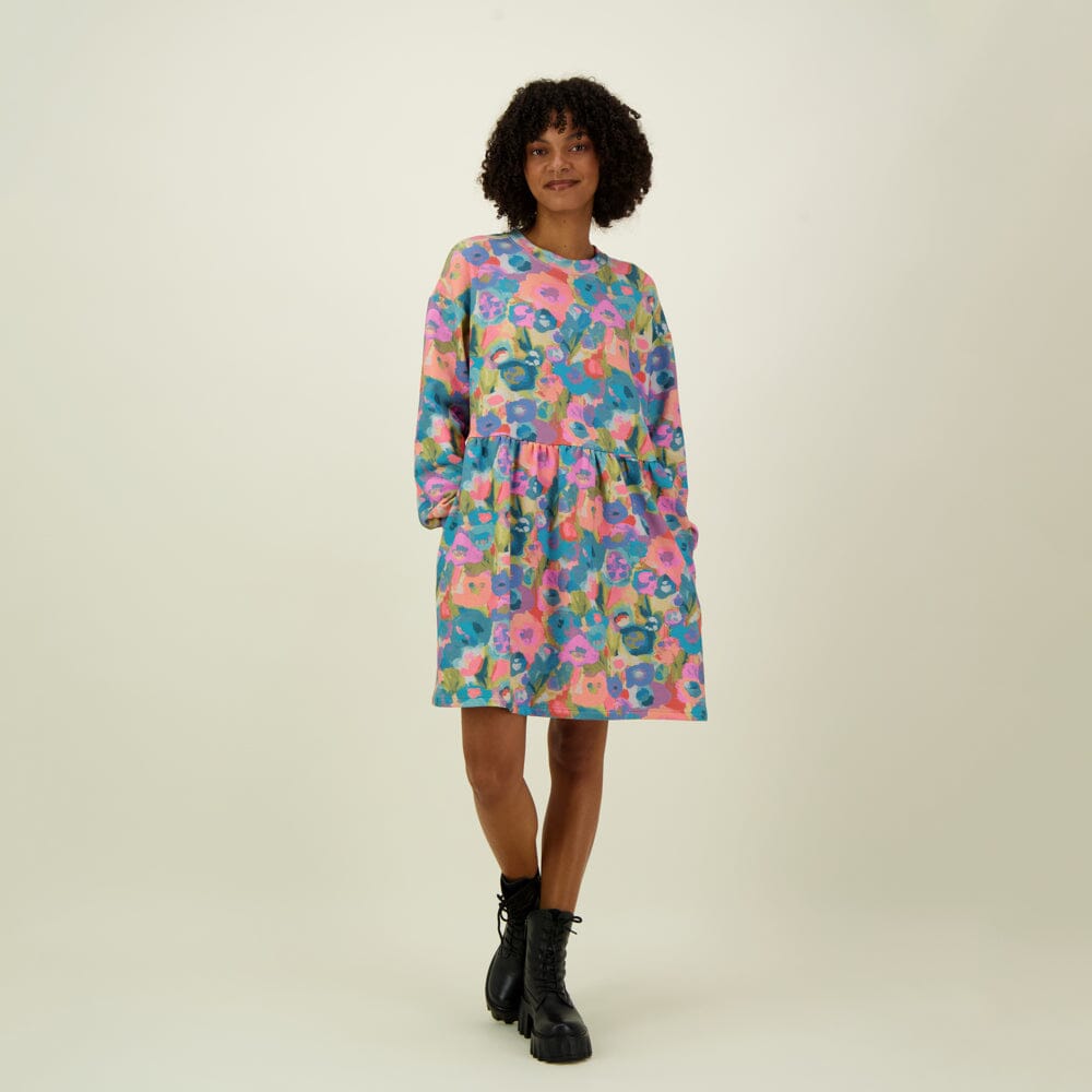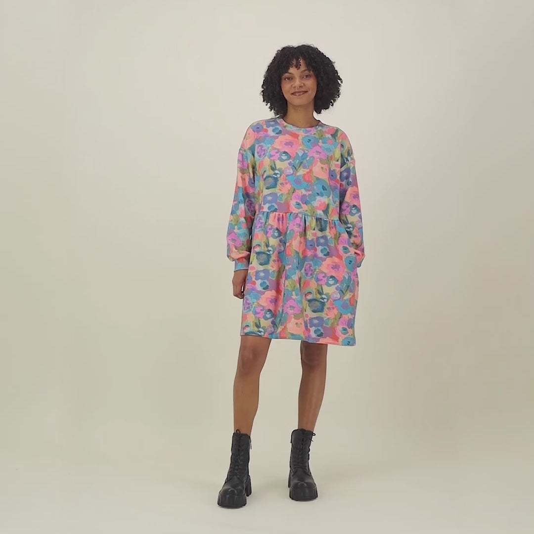 Tämä naisten puhvimainen, kaunis collegemekko on valmistettu luomupuuvillasta. Collegemekon sisäpinta on harjattua collegea. Materiaali on pehmoinen, joustava ja erittäin miellyttävän tuntuinen iholla. Pitkähihaisessa mekossa on myös taskut.