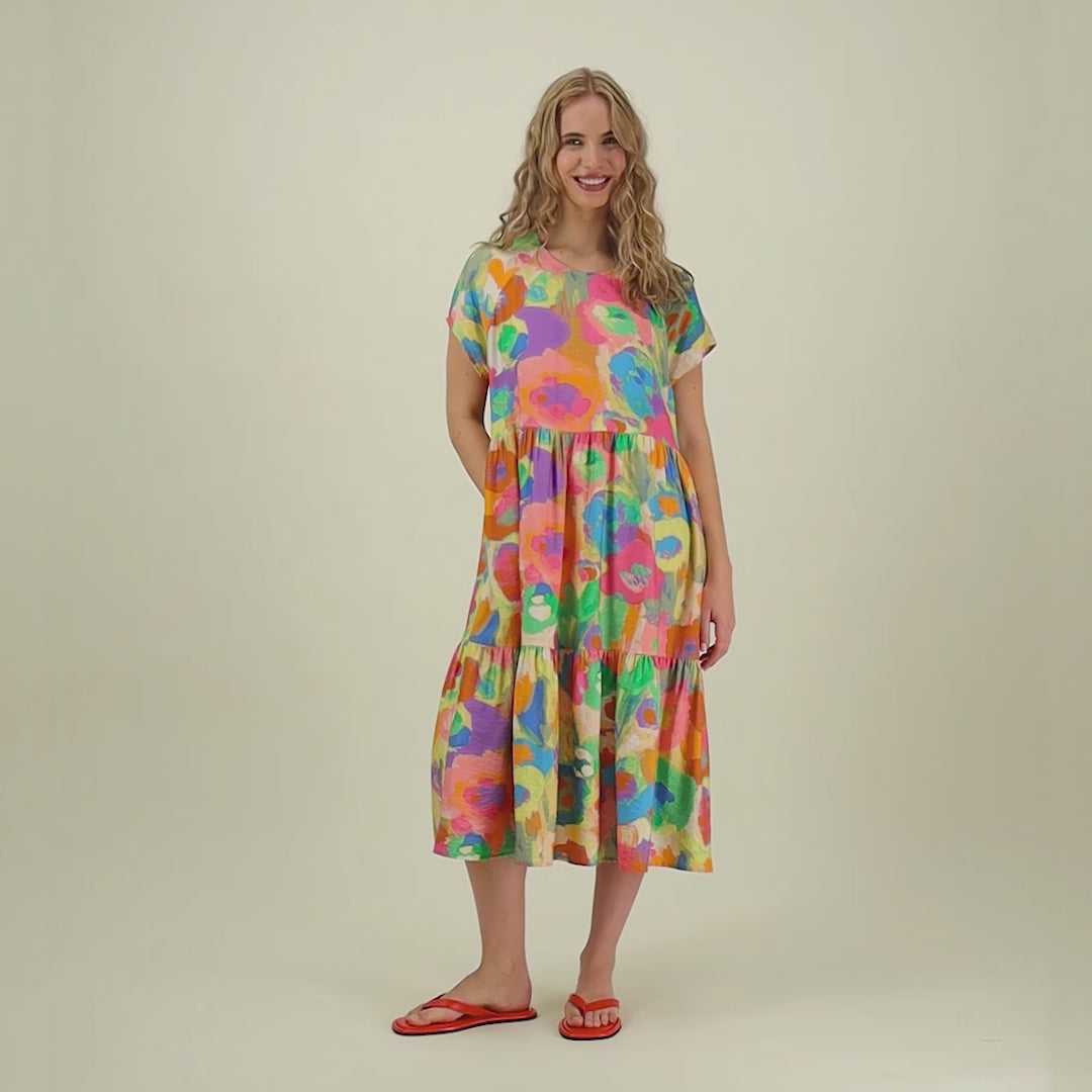 Miracles Tiered Midi Dress -Mekko värissä Spring on kesän näyttävä luottomekko, jossa kerrostettu helma tuo liikkeeseen kaunista elävyyttä. Raikas kukkakuosi tekee mekosta todellisen katseenvangitsijan.