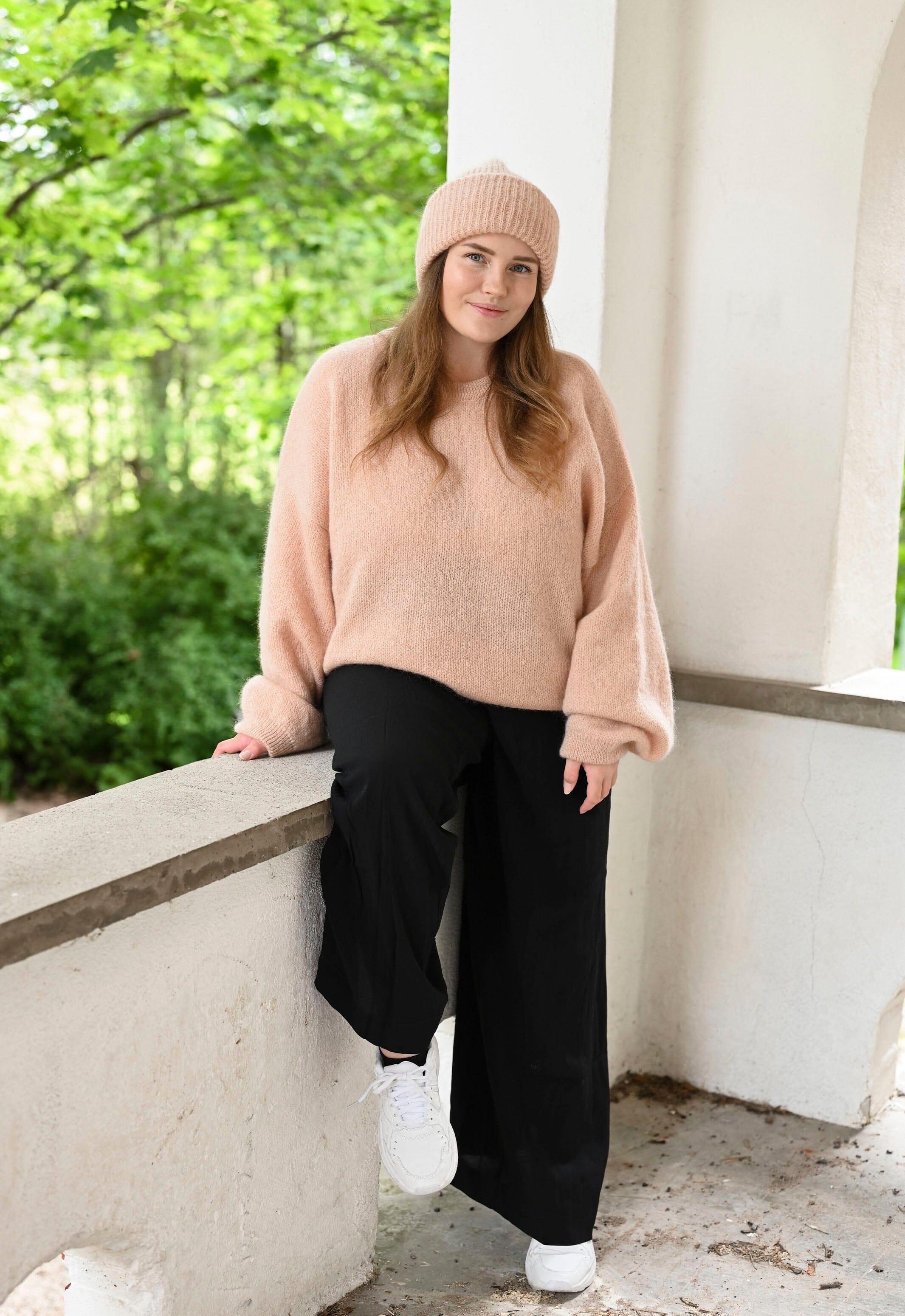 Pipon muhkea neulos ja napakka muoto istuvat kauniisti ja viimeistelevät talvityylin huolella. Hillitty Powder on sävy, joka toimii niin yksiväristen kuin kuosillistenkin asujen kanssa, ja se tuo asuun hienovaraista vaaleutta ja lempeyttä. Sävy on helppo yhdistää Metsolan muihin neuleisiin, erityisesti saman sävyiseen Mohair-kauluriin.