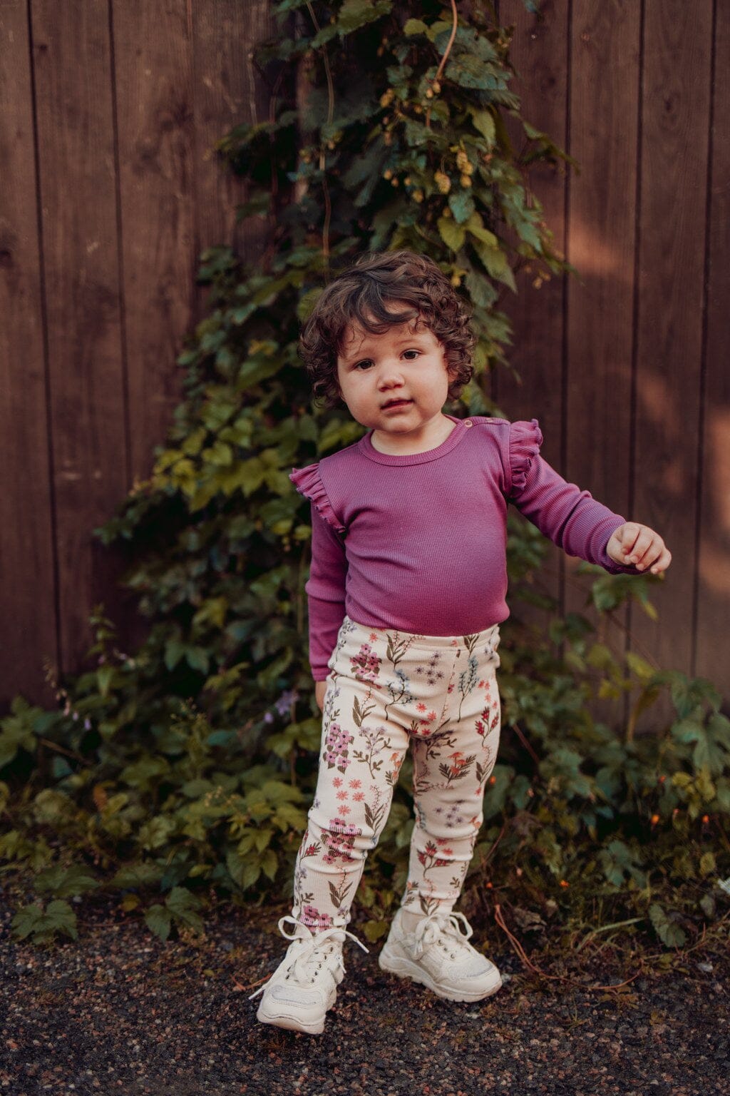 Body on valmistettu luomupuuvillaisesta ribbineuloksesta, joka joustaa kauniisti ja tuntuu pehmeältä ihoa vasten. Olkapäiden frillat tuovat bodyn ilmeeseen ripauksen juhlallisuutta, ja käytännöllinen nepparikiinnitys olalla ja haaraosassa helpottaa arjen pukeutumista.
