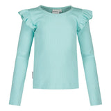 Kauniisti Rib Frilla -paita on valmistettu uudesta, entistä pehmeämmästä rib-kankaasta, joka tuntuu ihanan mukavalta päällä ja joustaa täydellisesti vauhdikkaissakin leikeissä. Raikkaan vaalea turkoosi Ocean-sävy tuo asuun keveyttä ja ajattoman ilmeen. Puseron pitkät hihat ja suloiset röyhelöt olkapäillä tekevät siitä ihastuttavan lisän niin arkeen kuin erityisiin hetkiin.