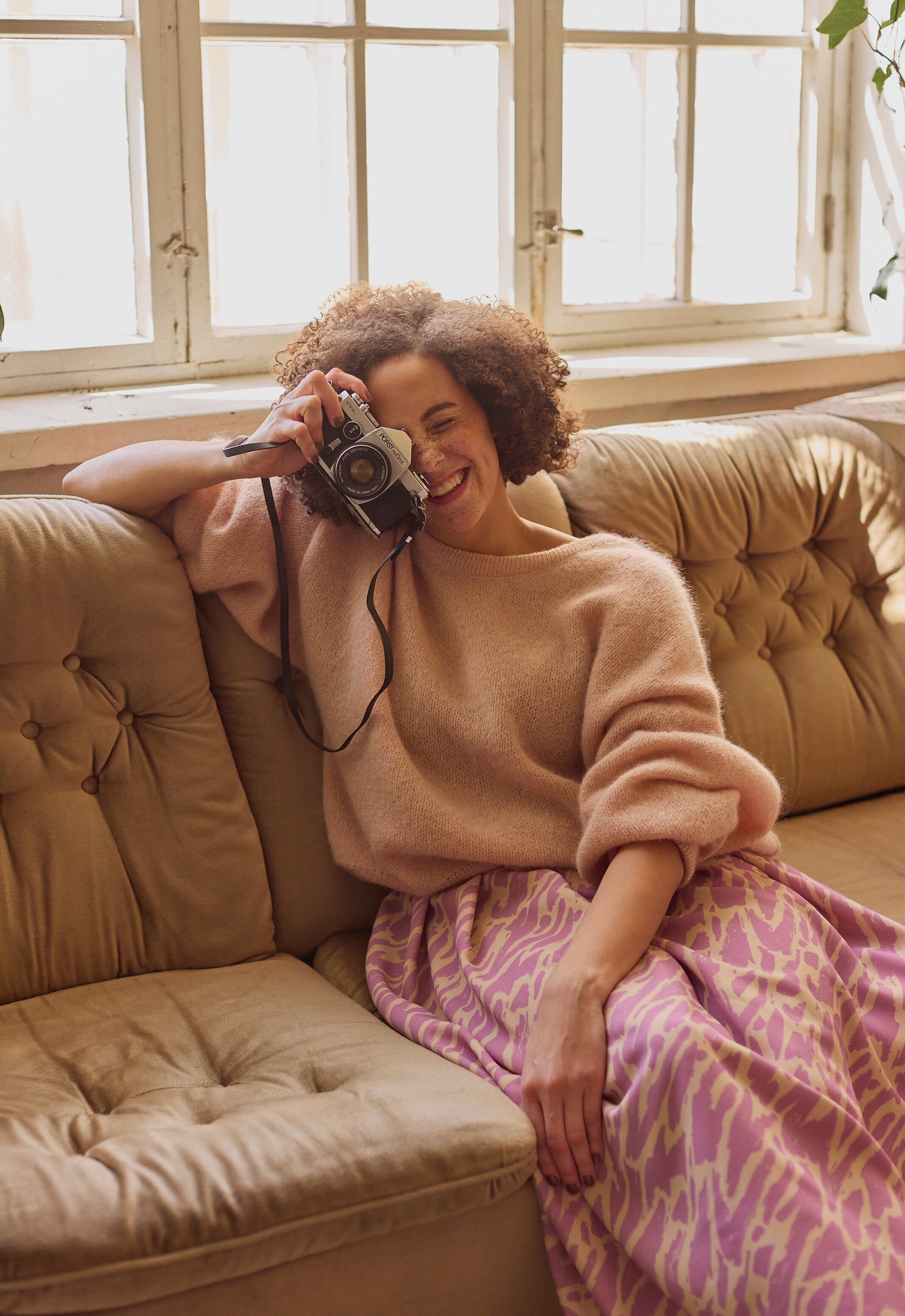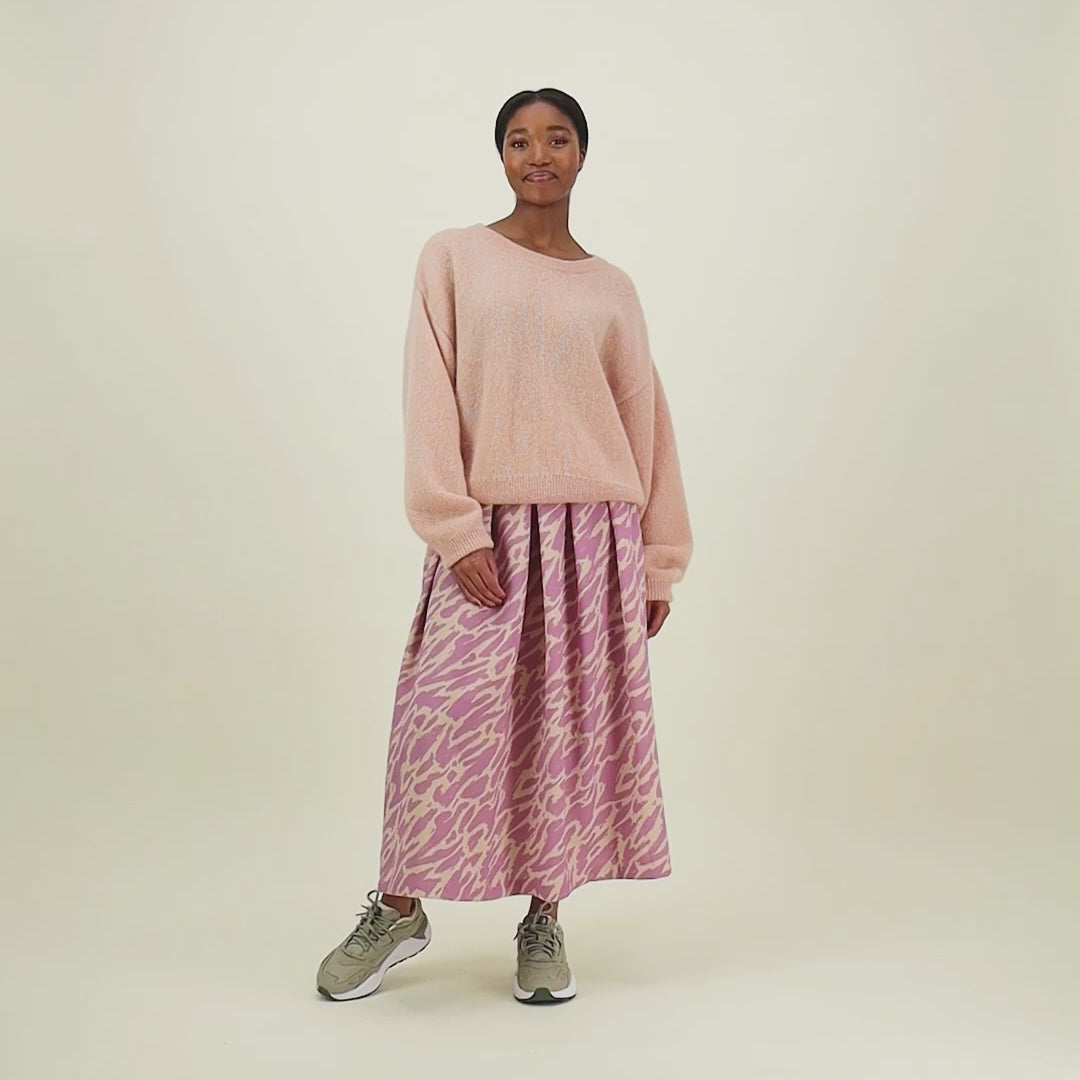 Sophy Pleated Skirt -Hame värissä purple tuo vaatekaappiisi ripauksen leikkisyyttä ja ajatonta tyyliä. Tämä upeasti laskeutuva laskostettu midihame on osa Can you hear me? -mallistoa, jossa yhdistyvät vahvat sävyt, vastuulliset valinnat ja persoonallinen suunnittelu.