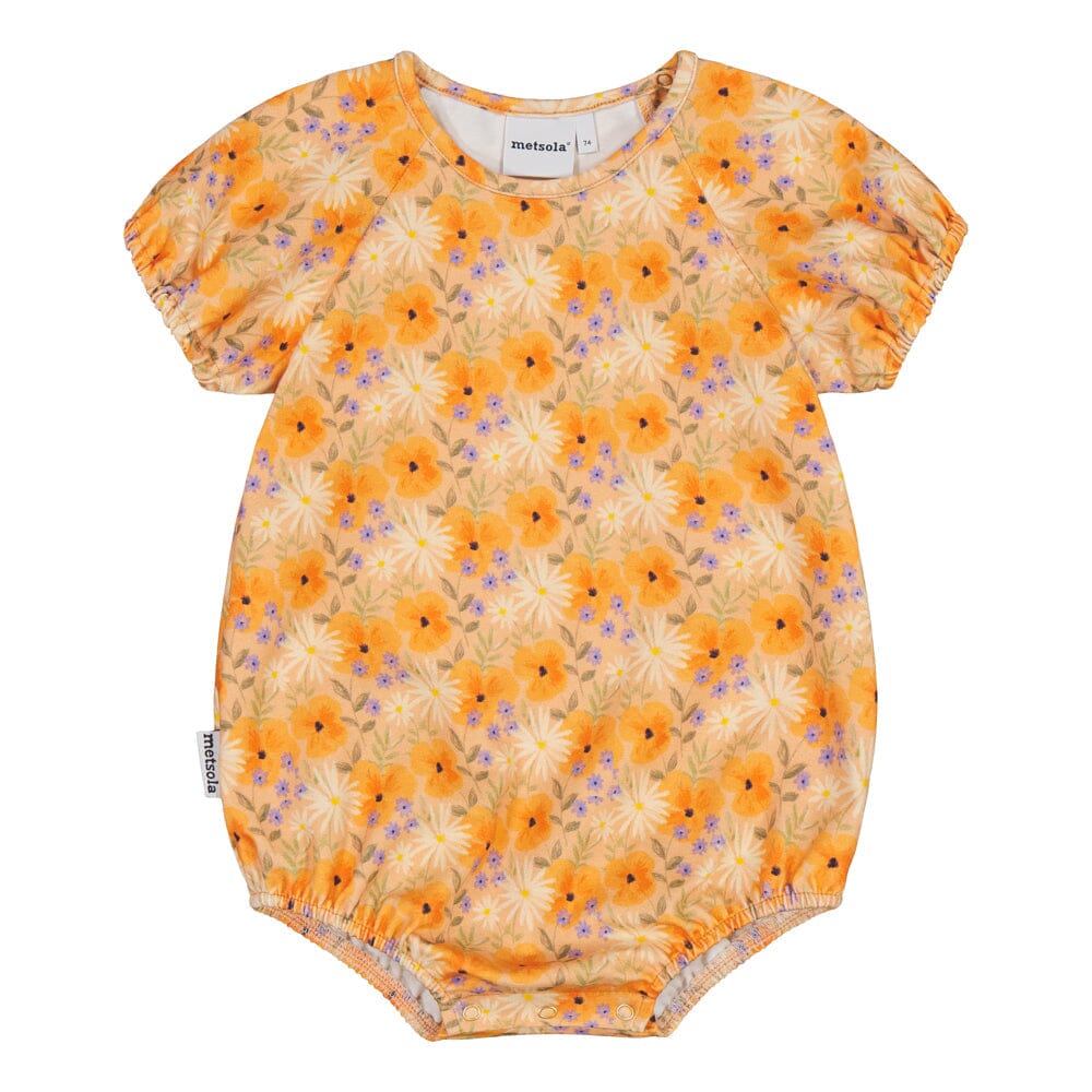 Ihastuttava Sunny-romper on täydellinen yhdistelmä mukavuutta ja suloista tyyliä! Rento malli antaa vaatteelle kevyen ja ilmavan istuvuuden, kun taas lyhyet puhvihihat tuovat asuun hurmaavaa pehmeyttä. Joustavat hihansuut tekevät romperista miellyttävän käyttää ja helpottavat pukemista.