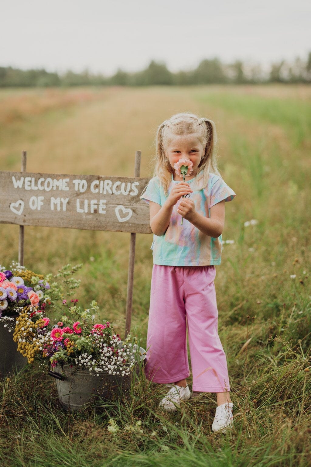 Kuvan tytön pituus on 106cm ja hänellä on yllään koko 98/104. Kokotaulukon mitat ovat suuntaa antavia. Mitat ovat +/- 1cm tarkkuudella.
