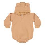 Luonnonläheinen Woody on lämmin ruskea sävy, joka tuo rauhallista ilmettä vauvan ja taaperon arkipukeutumiseen. Textured Bear Romper on mukava ja käytännöllinen bodyasu, jossa on pitkät hihat ja nepparilista kauluksessa helpottamassa pukemista.